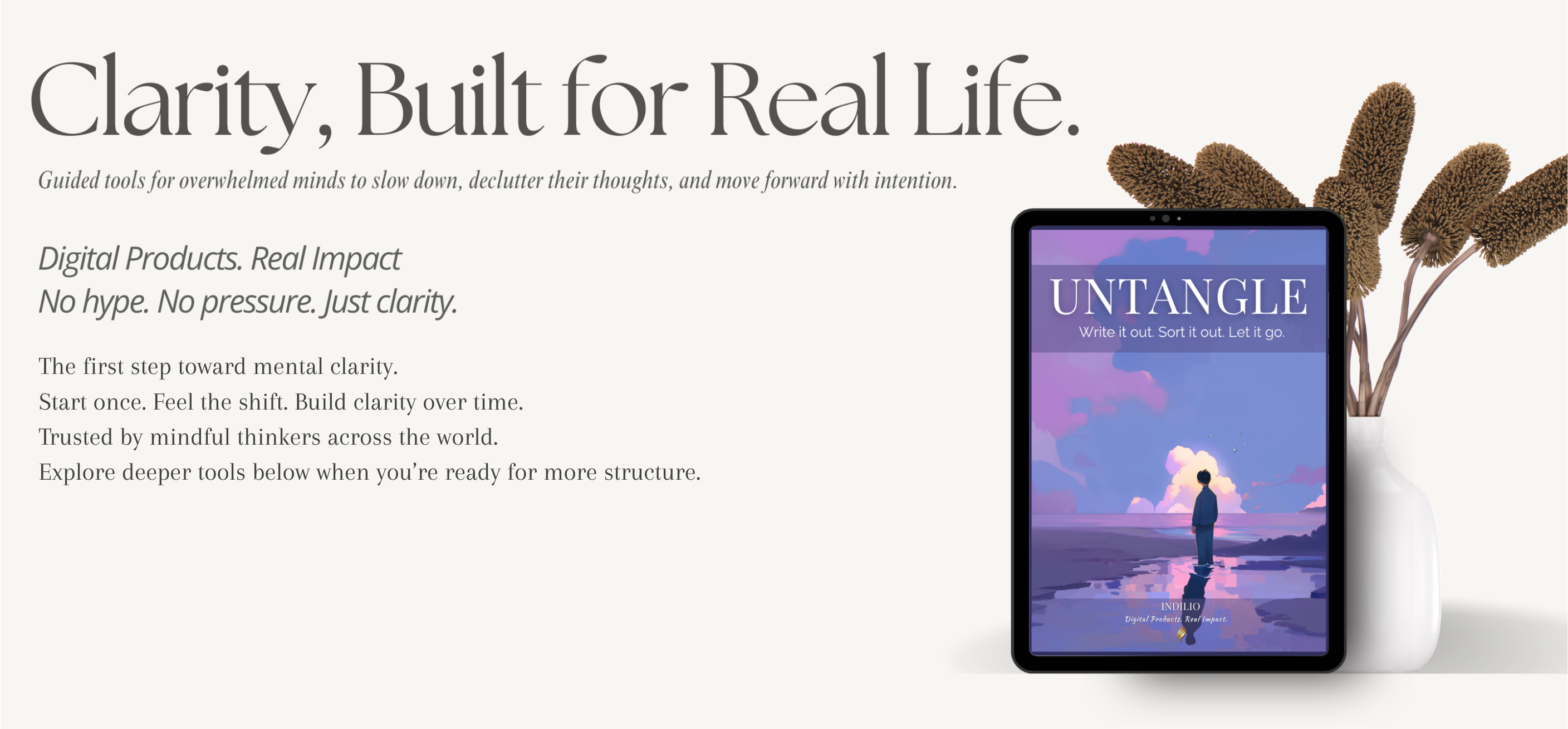 Untangle is a guided mental clarity workbook designed to help you slow down, empty your thoughts, and see what actually matters.